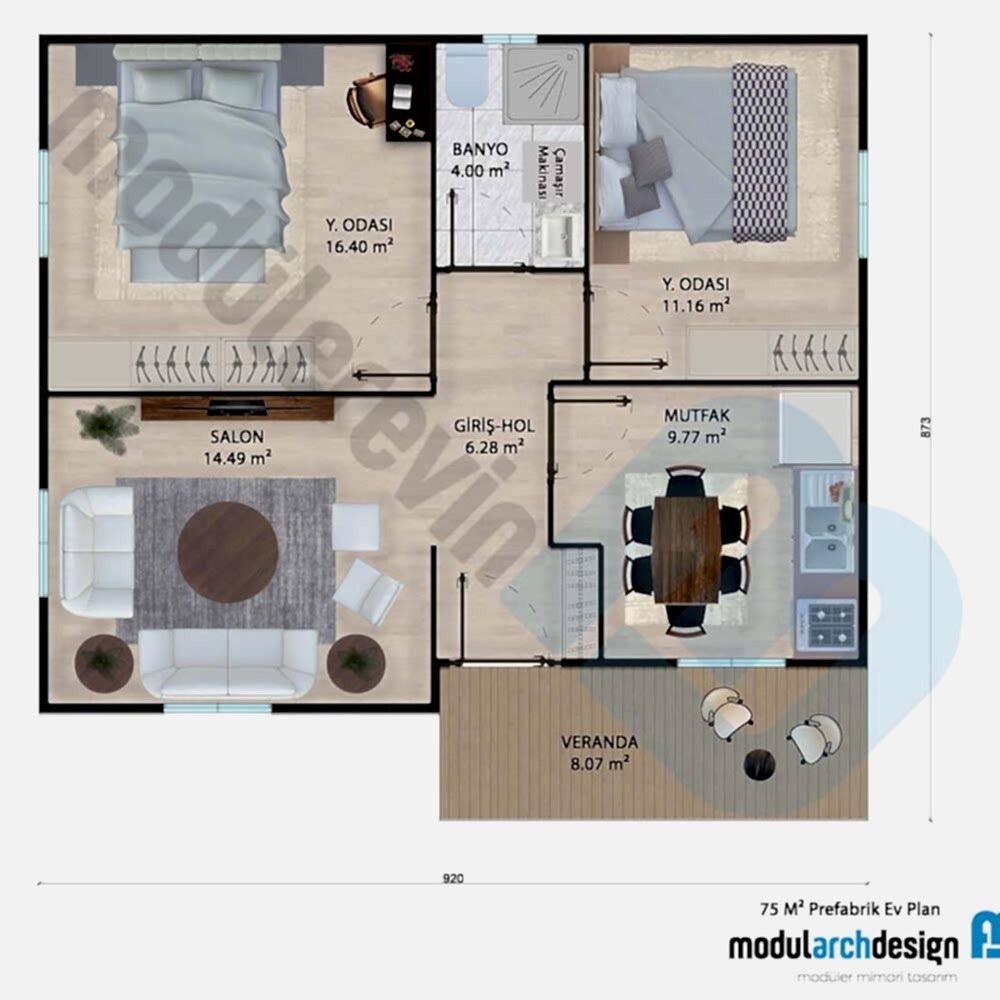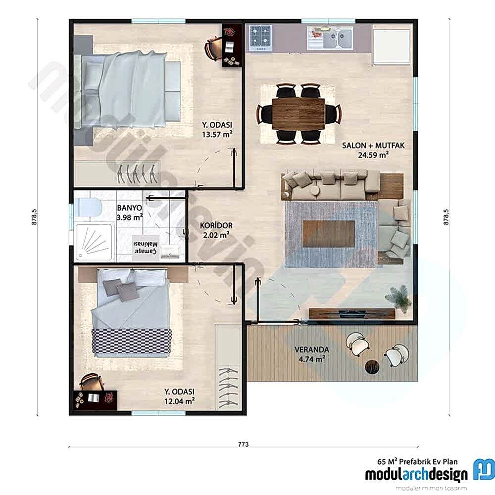 55 m² 2+1 Prefabrik Ev – Anahtar Teslimi Seçenekleri